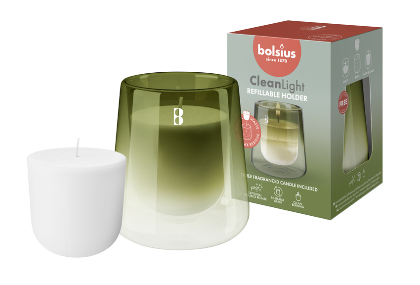 De Bolsius CleanLight starterkit bevat een handgeblazen glazen houder en de navulbare geurkaars ‘Gardenia & Fig’. Ervaar een 3 keer betere geurbeleving tot wel 20 uur dankzij de Bolsius ScentMax technologie. Het unieke ontwerp van de speciale CleanLight-houder in combinatie met de hoogwaardige samenstelling van de refill garandeert de meest zuivere geurafgifte en zorgt ervoor dat de kaars schoon brandt in de houder. Bovendien is het bijvullen van de kaars net zo eenvoudig als genieten ervan. Nadat de kaars is opgebrand, verwijder je eenvoudig het lontplaatje en vul je de houder gemakkelijk bij met een van onze magische geurcombinaties. Gemaakt zonder palmolie en met plantaardige wax. Minimum afval, maximaal genieten!