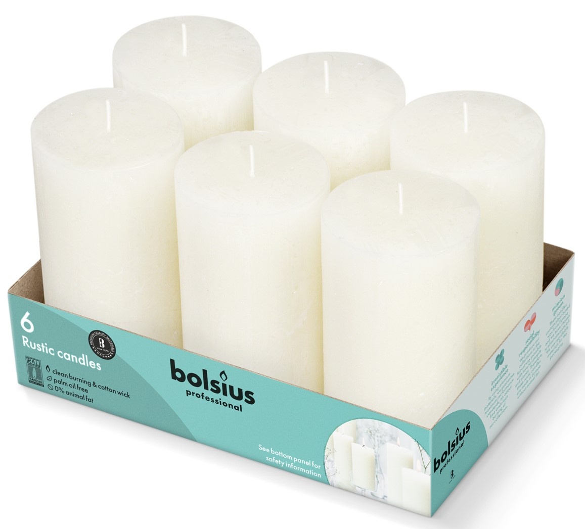 Rustieke Stompkaars 130/68 Ivoor (6 stuks)
