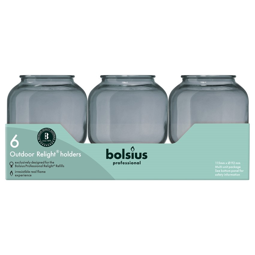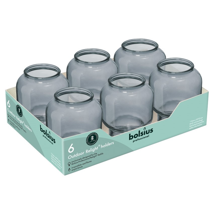 Bolsius ReLight refillhouder "Sfeer" Grijs voor zowel binnen als buiten op het terras.